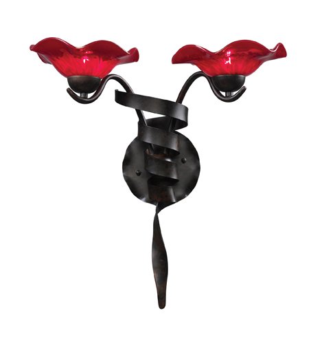 | Elk Lighting 10180/2CHY Villa Sconce Beautiful hand-formed glass offers a palette of vivid colors, complimented by a substantial wrought iron frame finished in weathered rust. Glass is available in amber, cherry, cobalt, or purple. W:18" H: 20" E;10" Weathered Rust ...Read more |