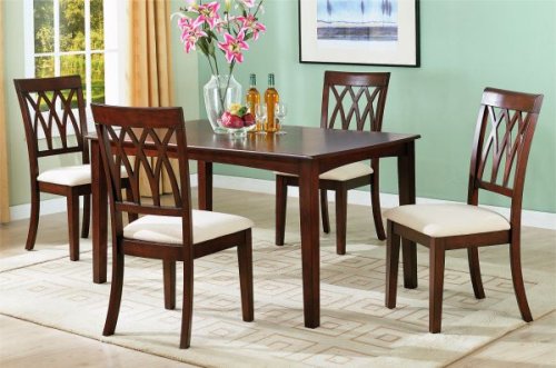5pc Contemporary Style Cherry Finish Dining Table & Chair Set Review